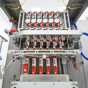 La particularité de cette machine pour 24ICE réside dans la conception du stickpack, où le sceau de longueur est placé sur le côté du bâton. Cette conception offre plusieurs avantages, notamment la facilité d'ouverture de l'emballage par le consommateur. De nombreux emballages standard sont difficiles à ouvrir, mais ce problème a été résolu grâce à la conception unique de 24 ICE et aux capacités de la machine stickpack.